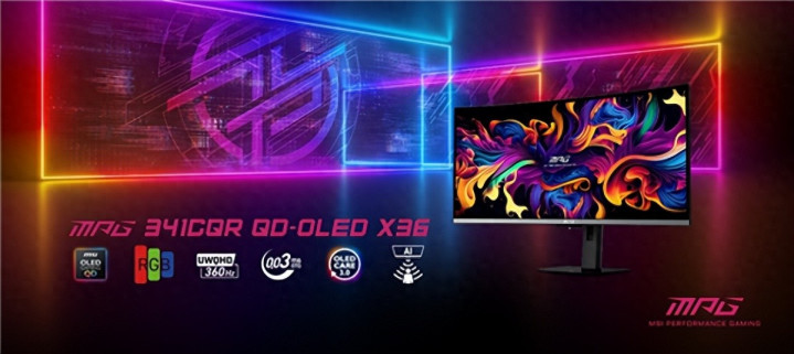 首先是新品MPG 341CQR QD-OLED X36流光显示器。这款34英寸21:9 UWQHD曲面电竞显示器采用最新的第五代QD-OLED面板,支持360Hz超高刷新率。