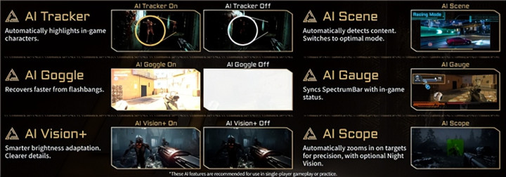 通过AI Tracker(AI追踪)、AI Gauge(AI仪表)、AI Vision+(AI视觉增强)、AI Scene(AI场景)、AI Goggle(AI护目镜)和AI Scope(AI瞄准镜)——MEG X让高级辅助变得简单即时。