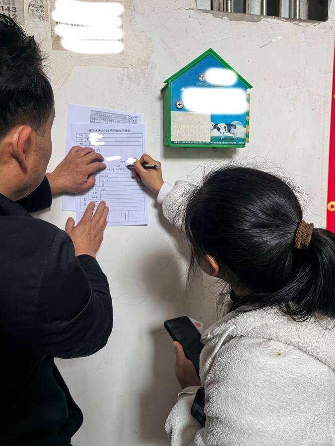 泰宁水务公司工作人员上门办理业务。受访者供图